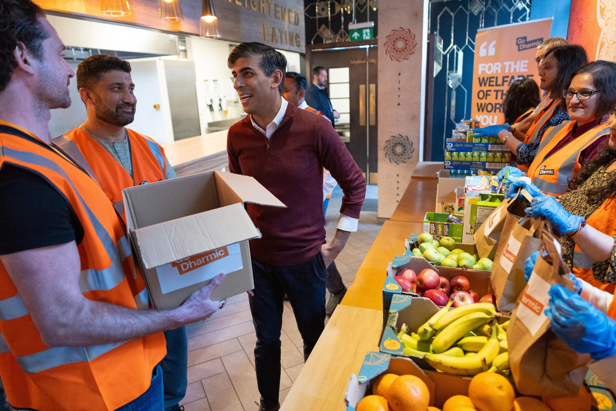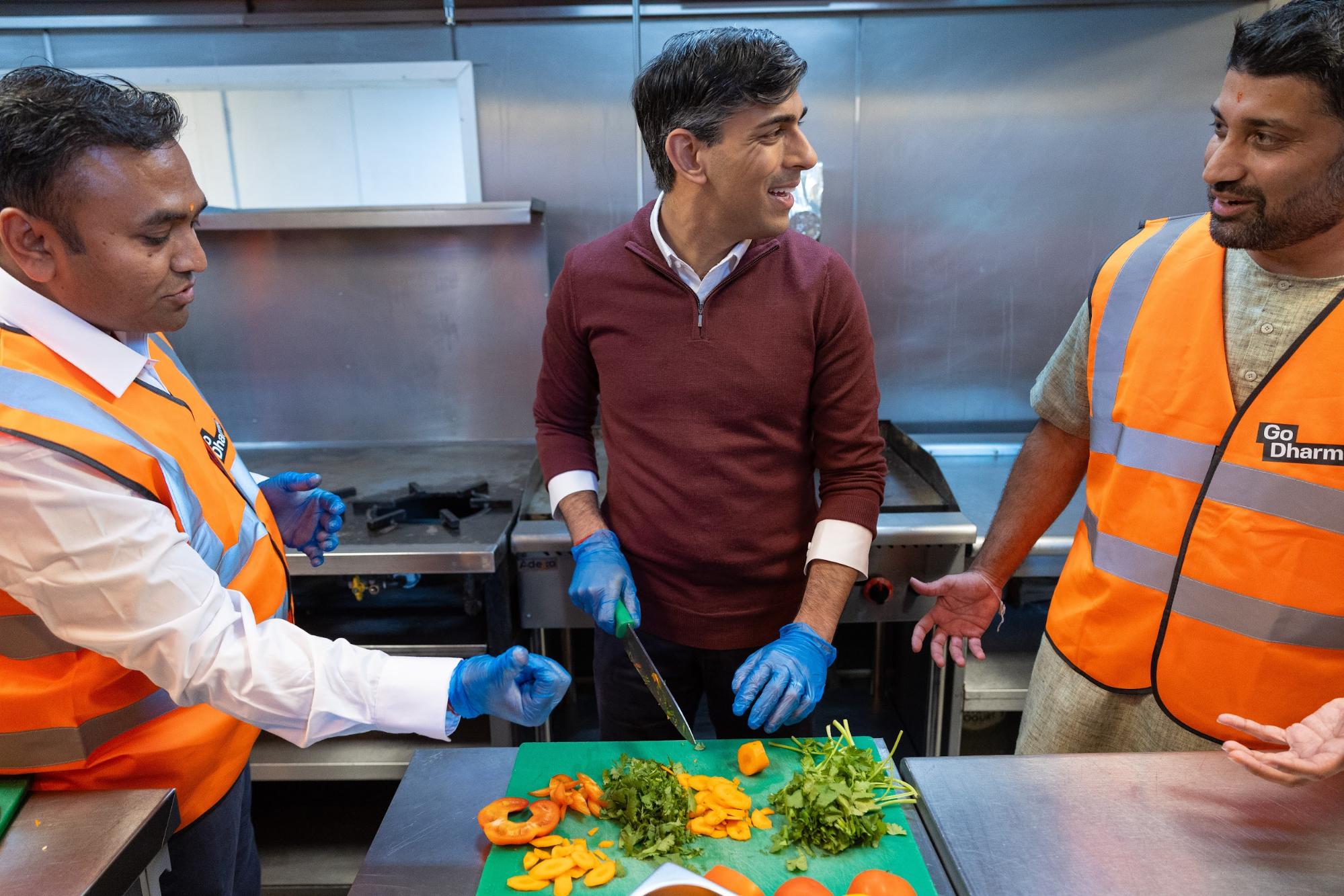 The British Prime Minister, Rishi Sunak, joined charity Go Dharmic in lending a hand to prepare meals in the kitchen with volunteers in London.