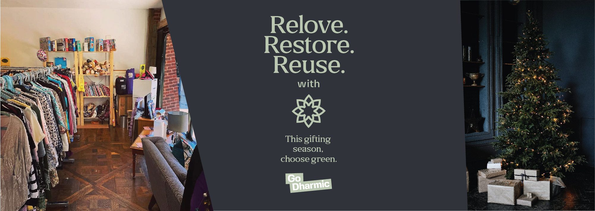 By buying pre-loved goods at the Good Karma Store you are directly helping your community. All of the Good Karma Store’s earnings go directly to supporting Go Dharmic, where it is used to feed the homeless, develop schools, promote environmental action, and spread love and compassion. This festive season, choose secondhand and your love of giving will be felt by both close friends and the wider community.